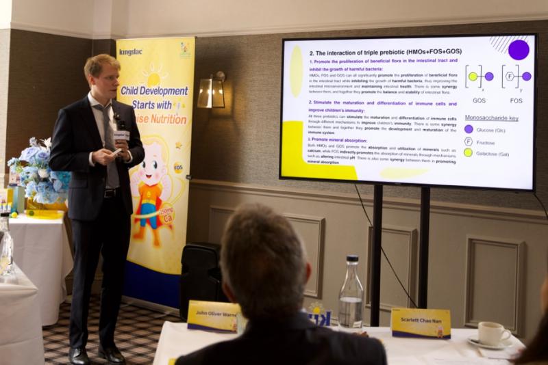 德国持证药剂师 Philipp Puttich,为与会者提供了选择儿童营养补充剂的专业建议。他强调,在选择钙补充剂时,应关注成分的纯净度、来源可靠性,以及科技创新与安全保障的融合。Philipp Puttich 提醒,市场上不乏因添加剂影响营养素活性与吸收率的低质量产品,家长需格外谨慎。同时,他建议根据儿童个体差异,选择经过临床验证的低过敏性配方,而 Kingslac 创新研发的多种营养解决方案,如针对免疫力提升,肠道敏感的儿童设计的三重益生元配方等正是对此需求的完美回应,为每个孩子提供个性化的健康支持。